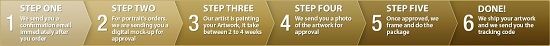 Step two – For portrait orders, you will receive a digital mock-up for an approval. It means that you have an ability to see every detail and color of your order. If you are not satisfied with a color of a digital mock-up you are free to change it before our artists will start to paint.